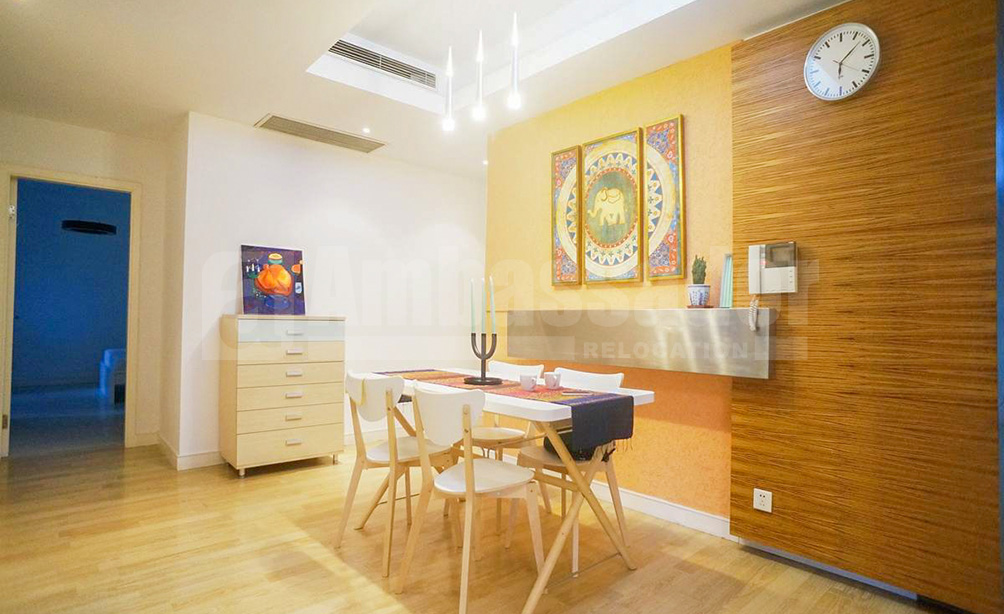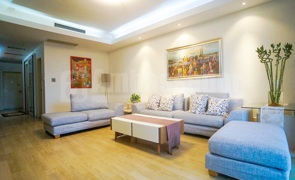 A spacious 4-bedroom apartment located on Puming Road in Pudong district. 7 minutes walking distance from Shangcheng Road station of metro line 9 and The First Yaohan shopping mall. It is easy access to restaurants, bars, cafes around the compound. The compound is equipped with club house including indoor swimming pool, rock climbing court and golf club. This apartment is fully furnished and equipped.