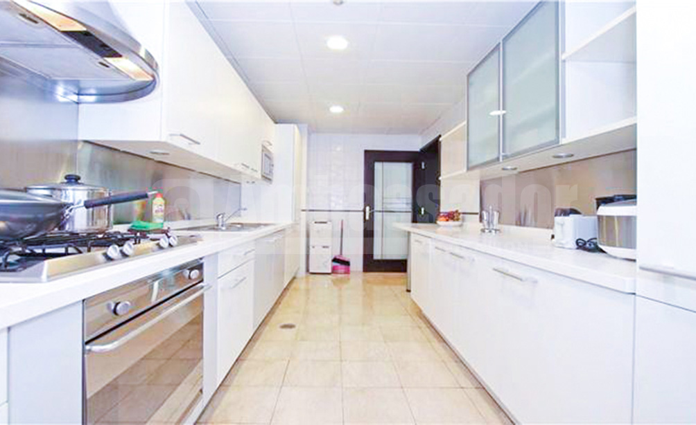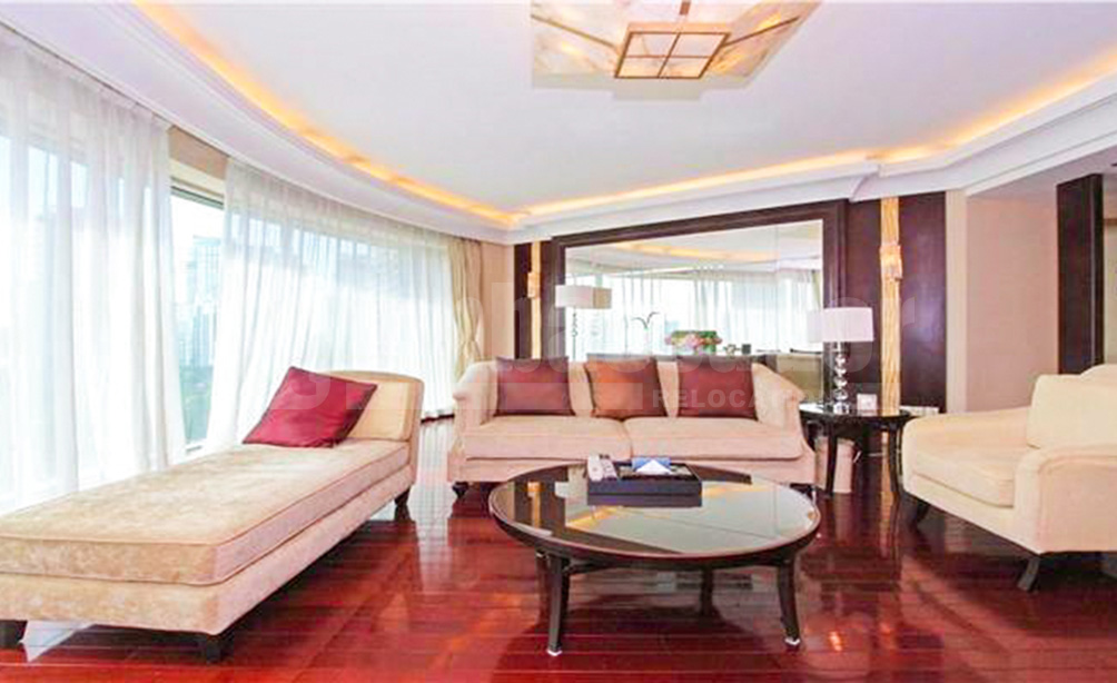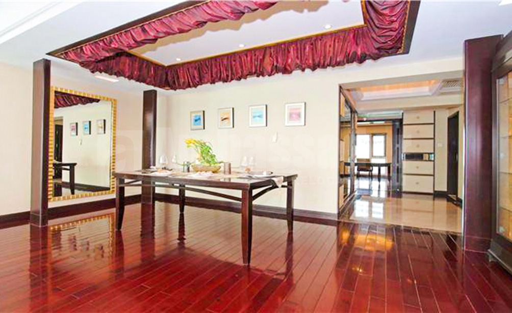 A spacious 4-bedroom apartment located on West Weifang Road beside the sublime Huangpu River landscape in Pudong district. 10 minutes walking distance from West Weifang Road station of metro line 9 and shopping mall-The First Yaohan. This upscale compound has everything needed, restaurants, bars, cafes and recreational clubs. There is an outdoor swimming pool in the compound. This can be an ideal retreat not only because of its environment but also the design of buildings. This apartment is fully furnished and equipped.