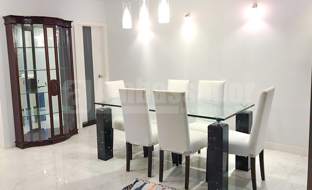 A 4-bedroom apartment located on Biyun Road in Pudong district. It is next to Biyun Park. Jingqiao shopping center is at walking distance, so it is easy access to restaurants, bars, cafes and recreational clubs. International schools and some other facilities are well-equipped. This compound has won preference of foreign expats.