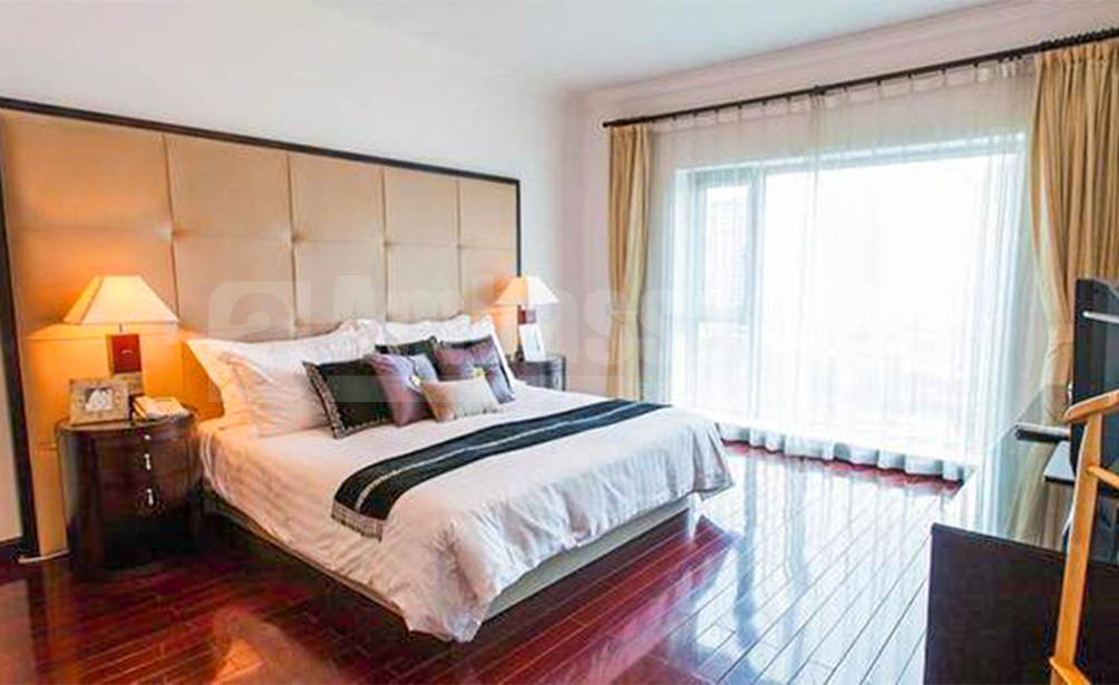 A sizable and bright 4-bedroom apartment with sublime Huangpu riverside landscape. It is located on West Weifang Road in Pudong district. 10 minutes walking distance from Shang Cheng Road station of metro line 9 and The First Yaohan shopping mall/ restaurants, bars, cafes and recreational clubs are within 10 minutes walking distance.