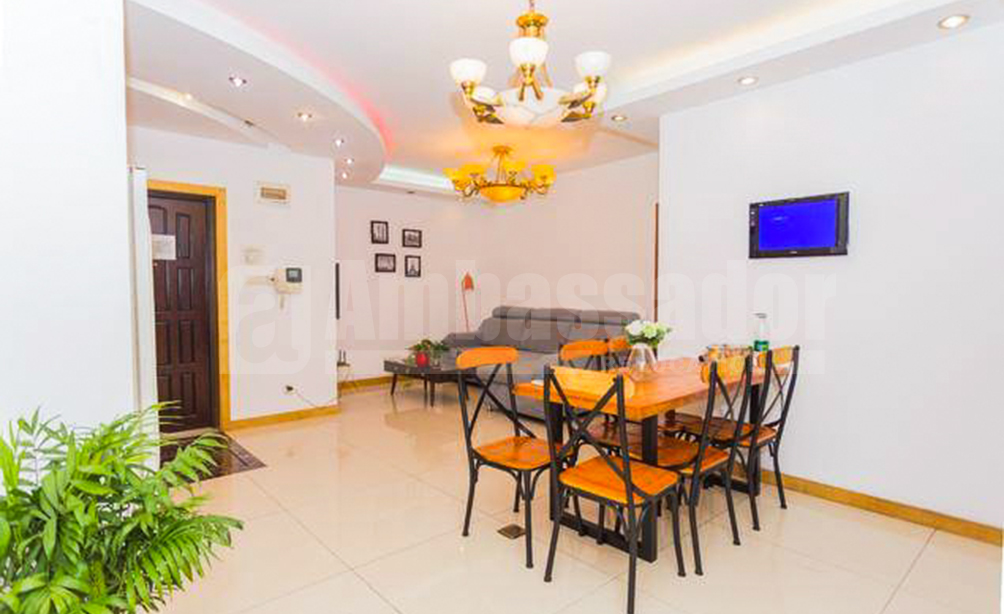 A 5-bedroom serviced apartment located on Renmin Road in Huangpu district of Shanghai. 3 minutes walking distance from Yuyuan station of metro line 10. Middle Huaihai Road shopping street is at hand. It is easy to find some restaurants, bars, cafes and recreational clubs. The apartment is fully furnished and equipped.