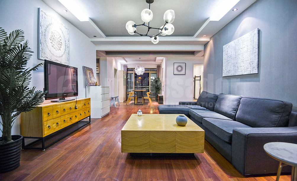 A well decorated 4-bedroom apartment located on West Beijing Road in Jing’an district of Shanghai. 5 minutes walk to Xinzha Road station of metro line 1. Nanjing Road commercial area is next to the Mansion. It is centrally located to every area of the inner city. The apartment also provides great city view.