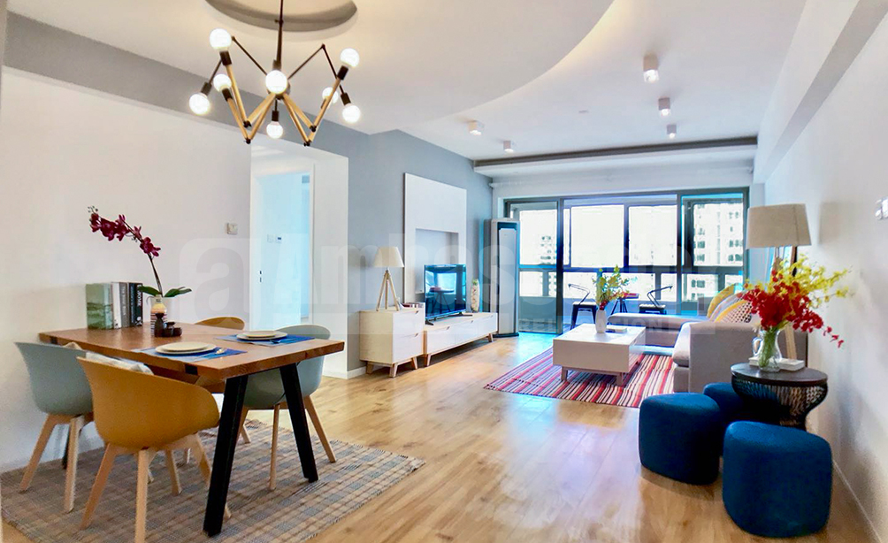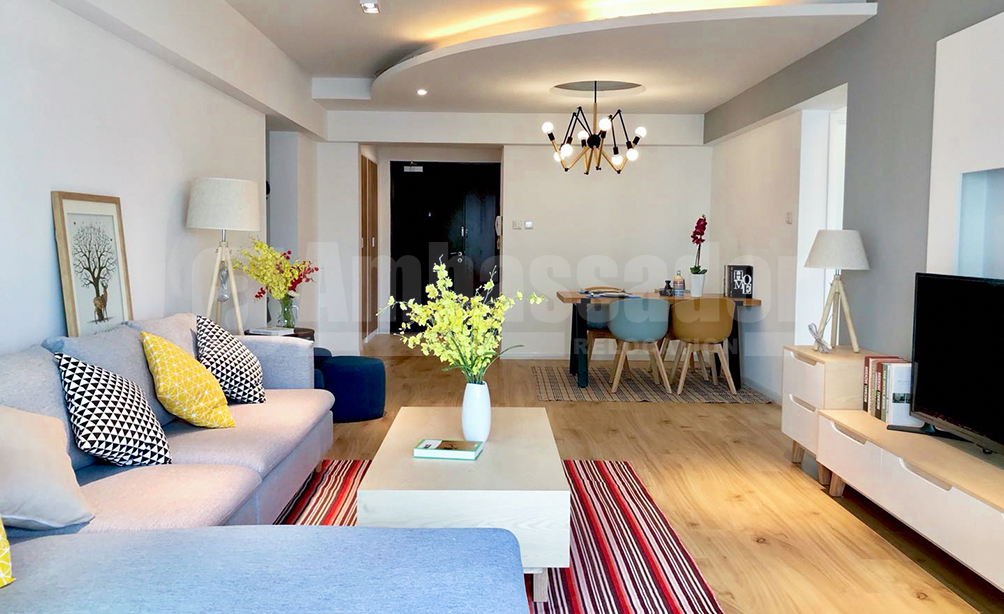 A beautiful 4-bedroom apartment located on Changshu Road in Jing’an district of Shanghaii. 8 minutes walking distance from Changping Road station of metro line 7 and Plaza 66 shopping mall. This superior location is close to everything, restaurants, bars, cafes and recreational clubs. The apartment is fully furnished and equipped with floor heating.