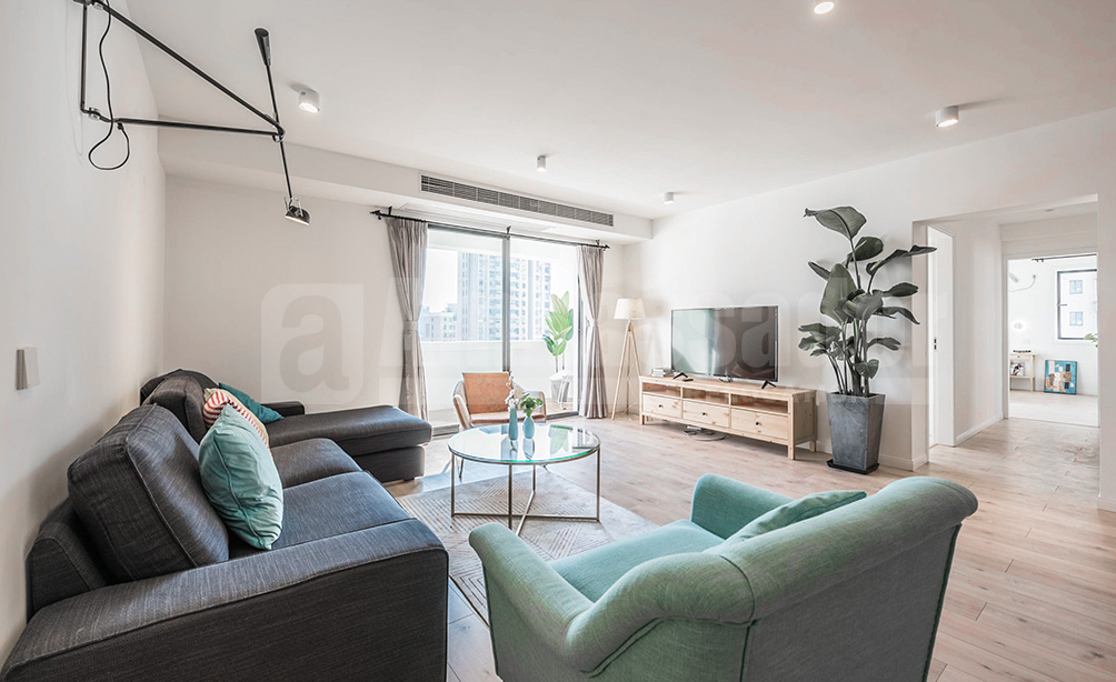 A residential 4-bedroom apartment located on Damuqiao Road in Xuhui district of Shanghai. 5 minutes walk to Jiashan Road station of metro line 9&12. Sun Moon Light shopping mall is within 10 minutes walking distance. Restaurants, bars,, cafes and recreational clubs are at hand. Schools are also easy access to. This sunny and spacious apartment is equipped with floor heating.