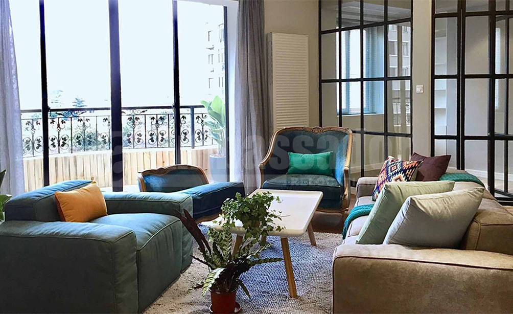 A deluxe4-bedroom apartment located on West Jianguo Road in the former French Concession of Shanghai. 5 minutes walk to the metro line 7&9. It is close to Huaihai Road commercial area, which make your life convenient. Restaurants, bars, cafes and recreational clubs are at walking distance. This apartment is fully furnished with cozy furniture and equipped with floor heating and wall heating.