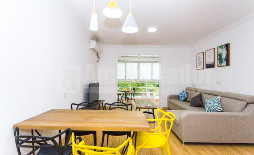 A 5-bedroom apartment located on West Suzhou Road in Jing’an district of Shanghai. 8 minutes walking distance to Jingning road station of metro line 13. Printemps shopping mall is at walking distance. It is easy access to restaurants, bars cafes and recreational clubs. The apartment is fully furnished and equipped.