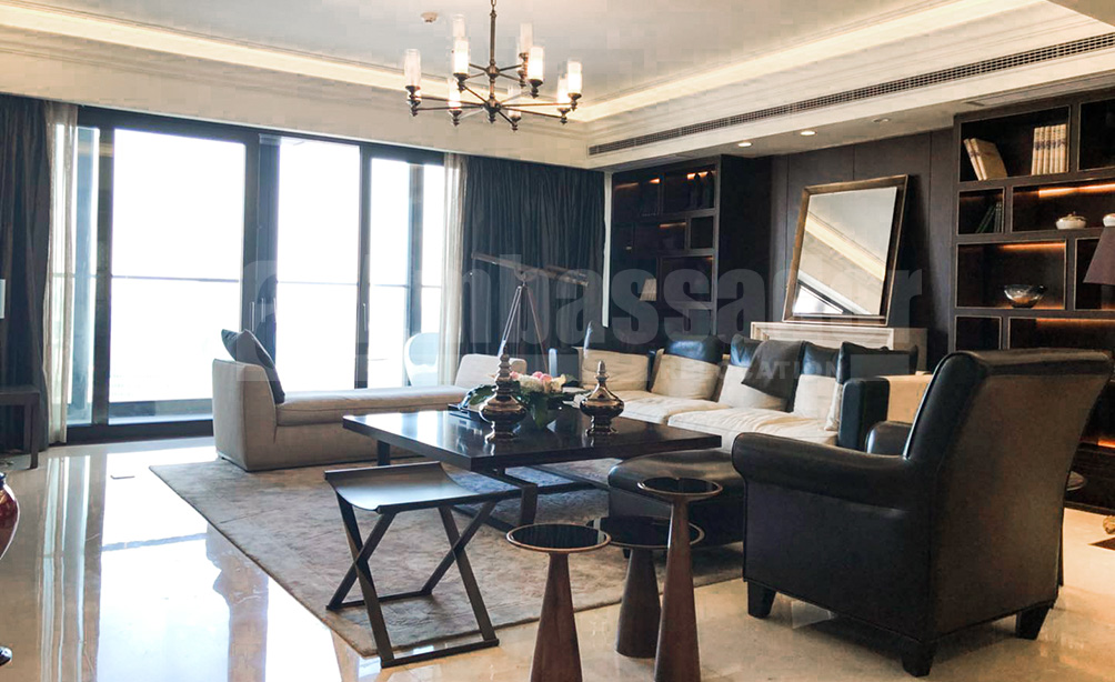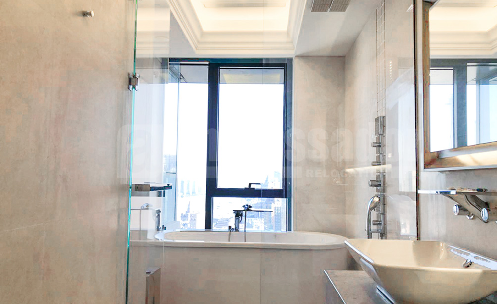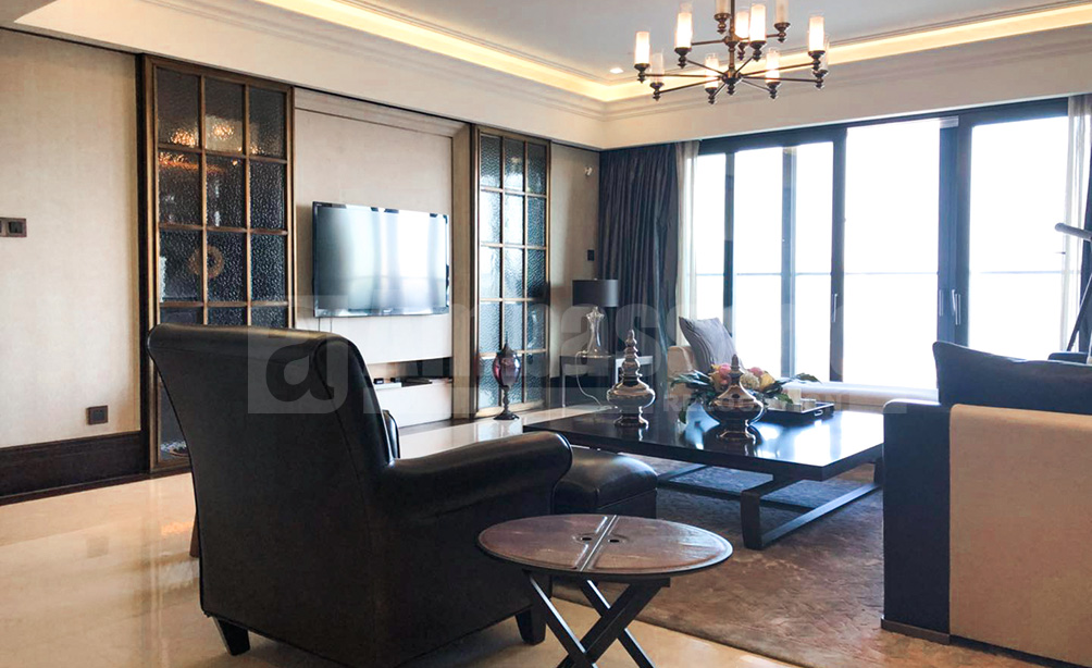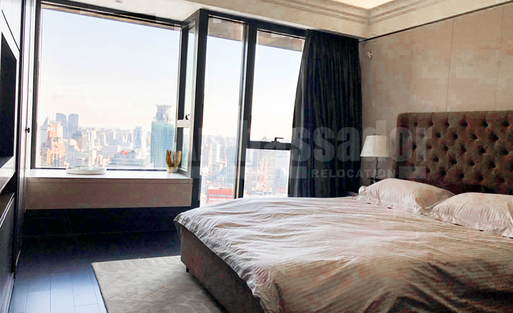 A deluxe 4-bedroom apartment located on North Shanxi Road in Zhabei district of Shanghai. 3 minutes walking distance to Tiantong Road station of metro line 10&12. The location is beside the Suzhou river. Joy City shopping mall, restaurants, bars, cafes and recreational clubs are easily access to. From this sunny apartment, you are able to see the oriental Pearl Tower. The apartment is fully furnished and equipped with floor heating.