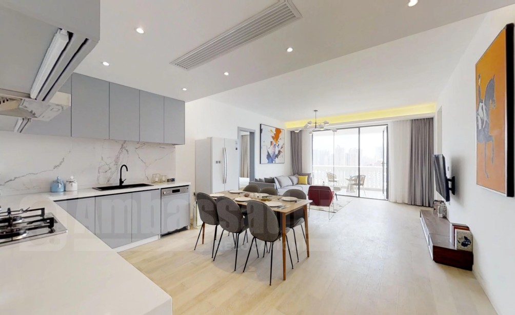 Mingyuan Century Garden/No 1199,Middle Fuxing Road,walking distance to line 1/10/12,4/2/2,170sq.m,floor heated,A/C,open kitchen with oven and dish washer,big balcny with great view,RMB44,800/M,