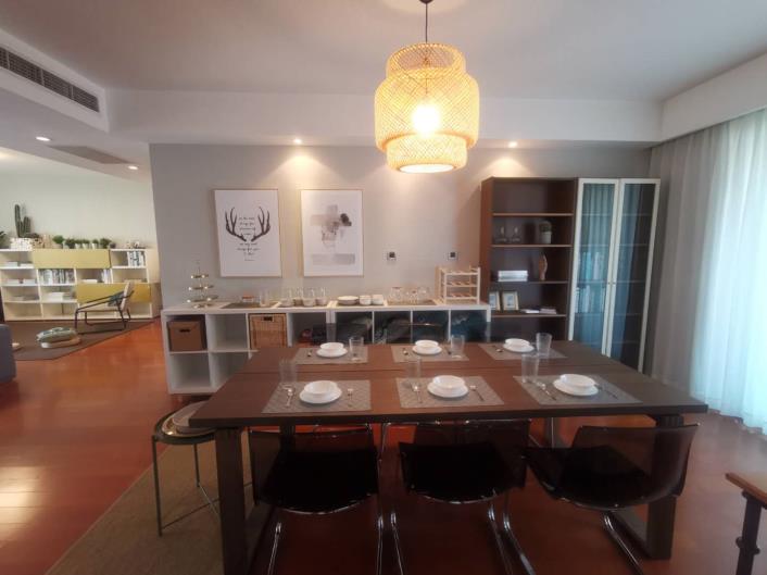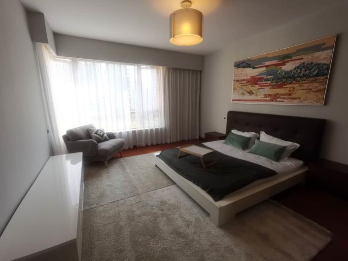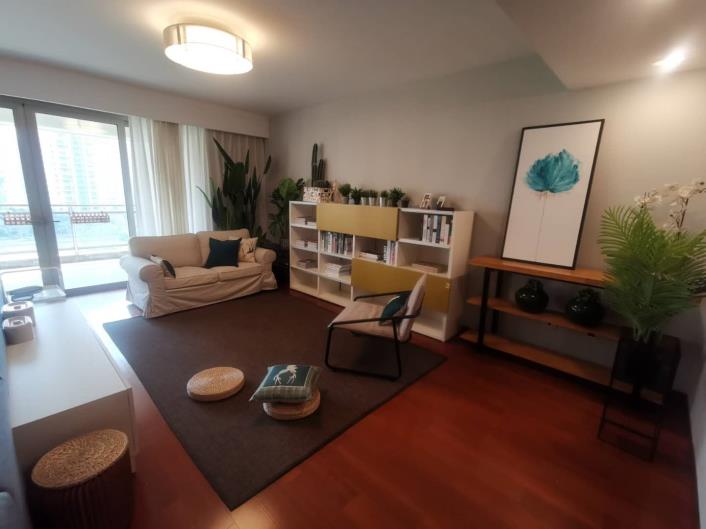 This is a spacious 4-bedroom apartment in Yanlord Town. It provides residents great luxury of living condition. It has floor heating and central AC. Residents have a nice view from the big balcony of the apartment. Besides, the landlord is flexible with furniture.
