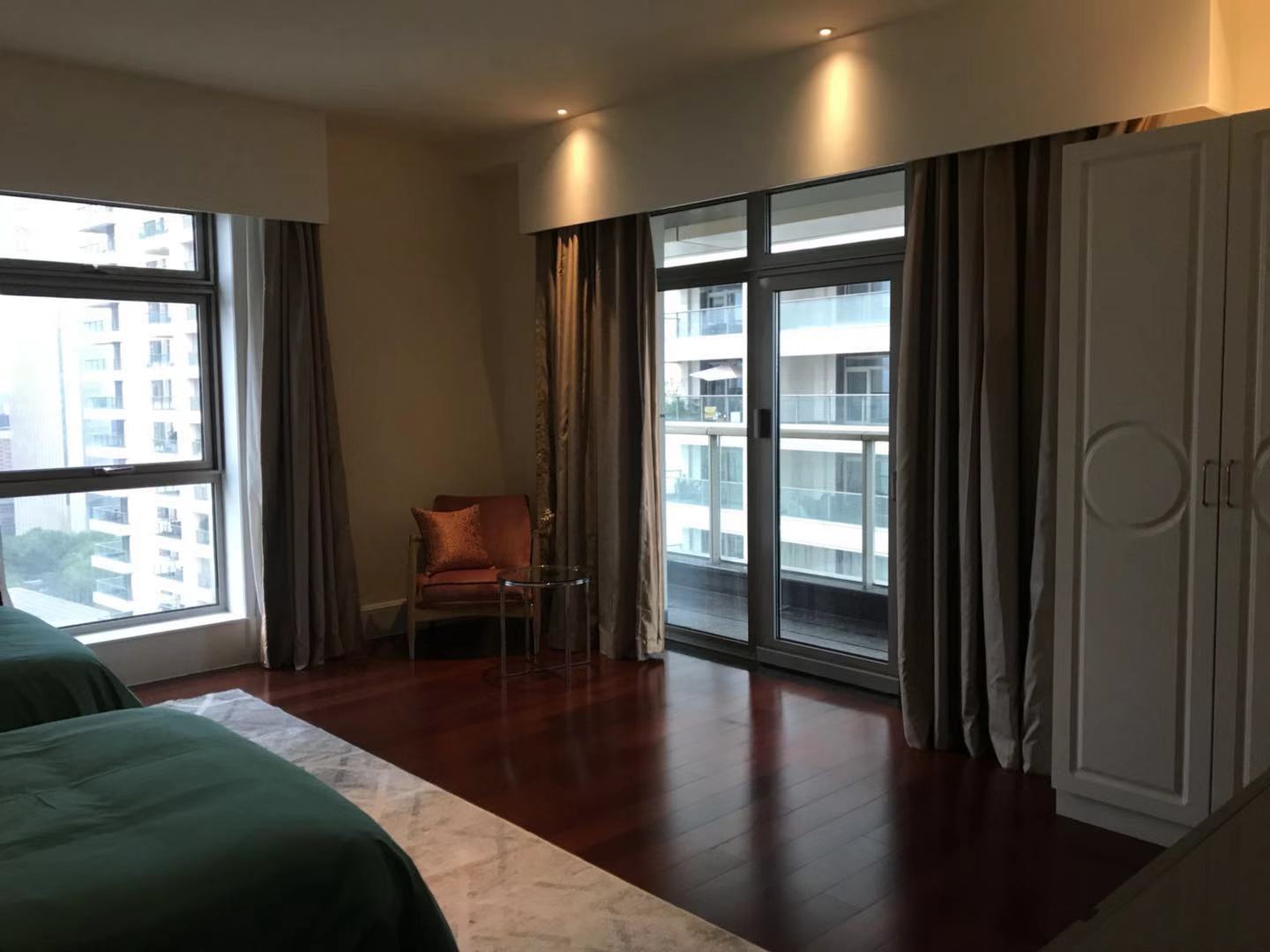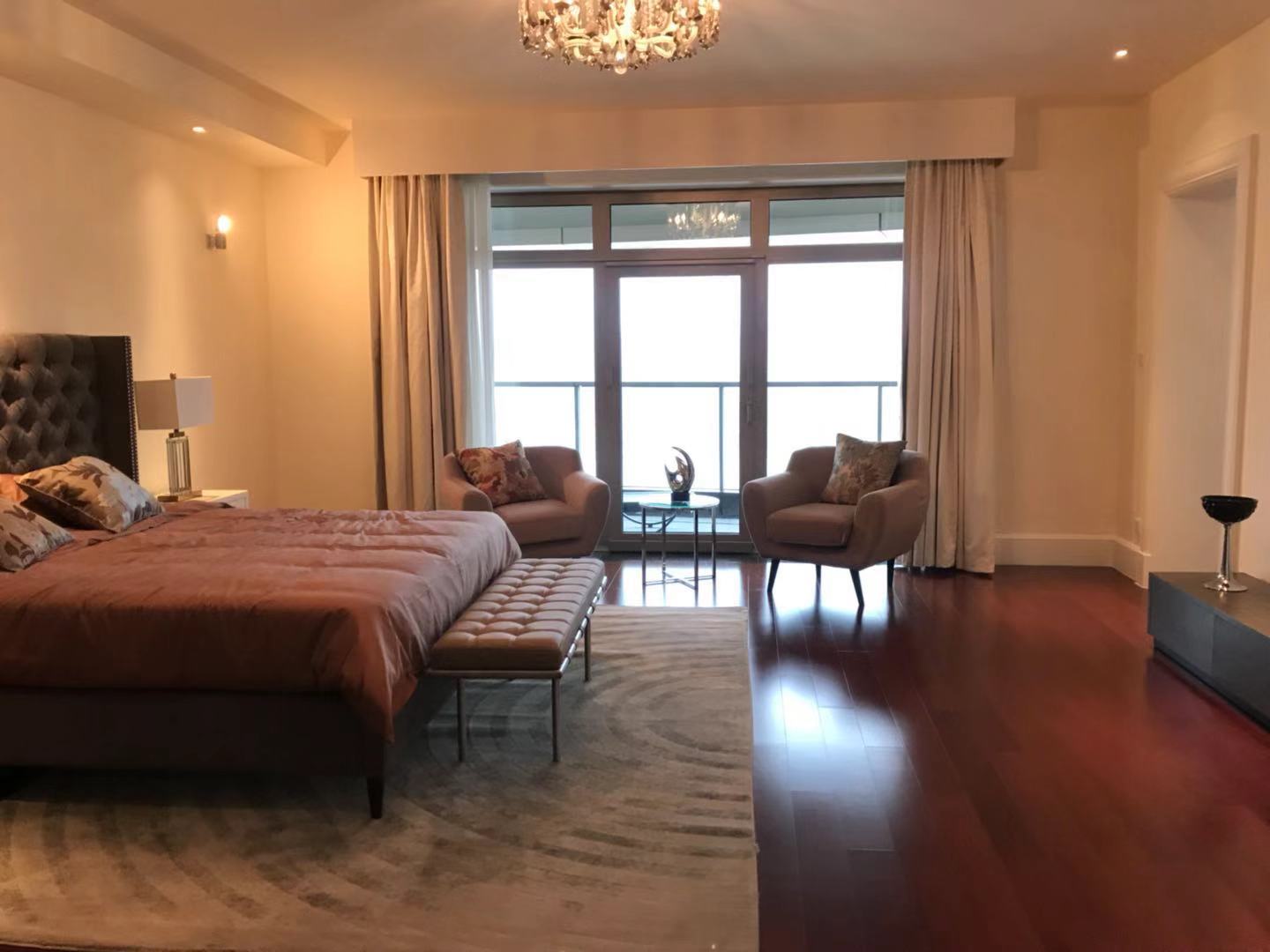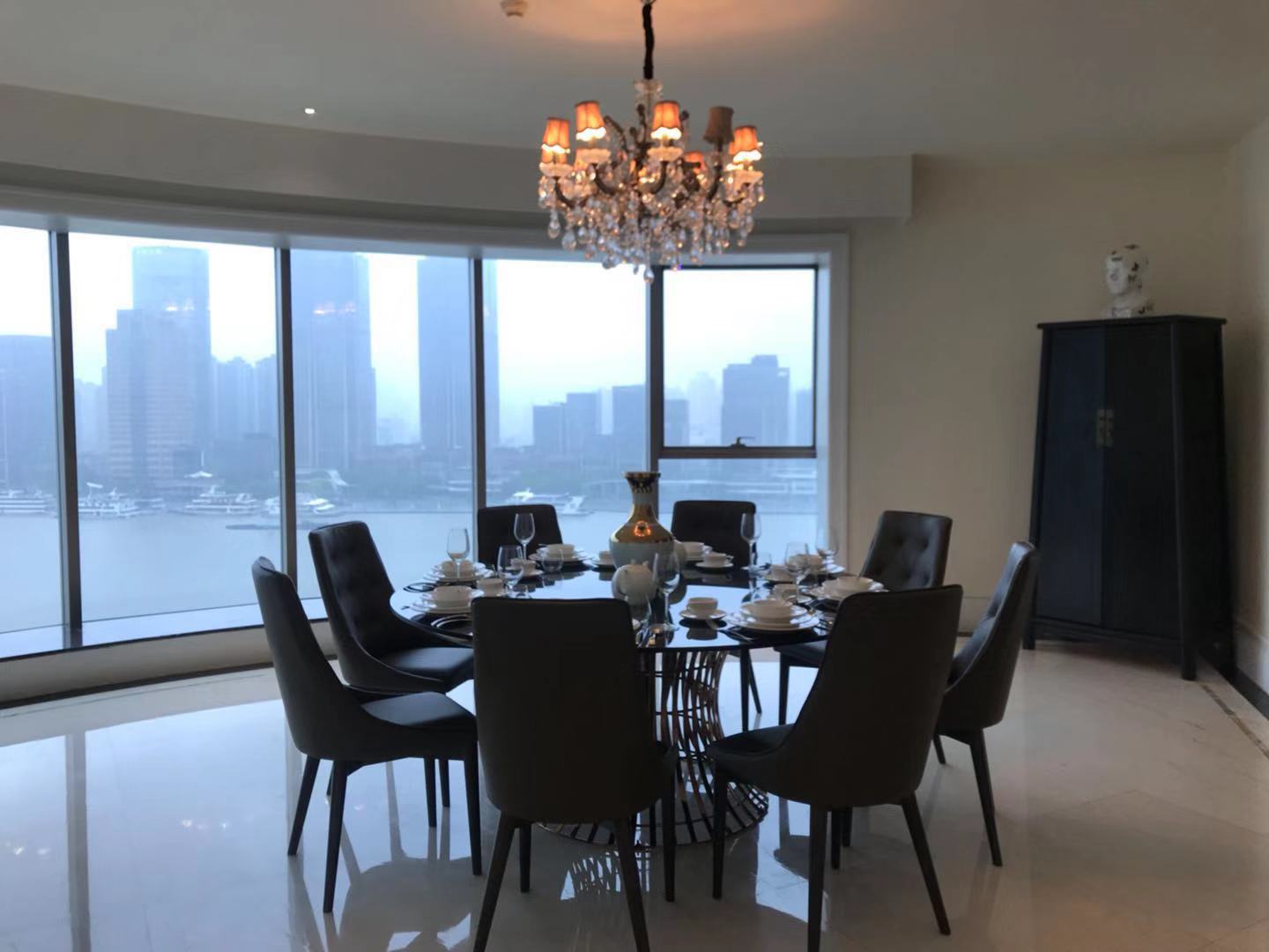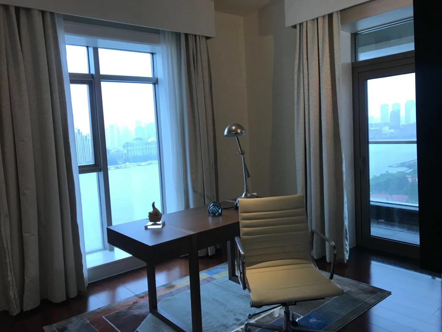 Located within walking distance to the major office buildings in the Lujiazui financial centre, shopping mall (Super brand Mall), fine dining venues (cool restaurants along the Huangpu river), the compound is close to the Yan'an Road Tunnel, and offers easy access to Puxi. As one of Shanghai's most exclusive apartment compounds, Tomson Riverside offers the city's finest view of the Huangpu River and the historic buildings along the Bund. This luxury compound contains four high-end apartment blocks, and with only one apartment per floor residents enjoy the ultimate in privacy, spaciousness and comfort. All apartments feature floor-to-ceiling French windows with a panoramic view of the Bund, as well as top-end appliances.