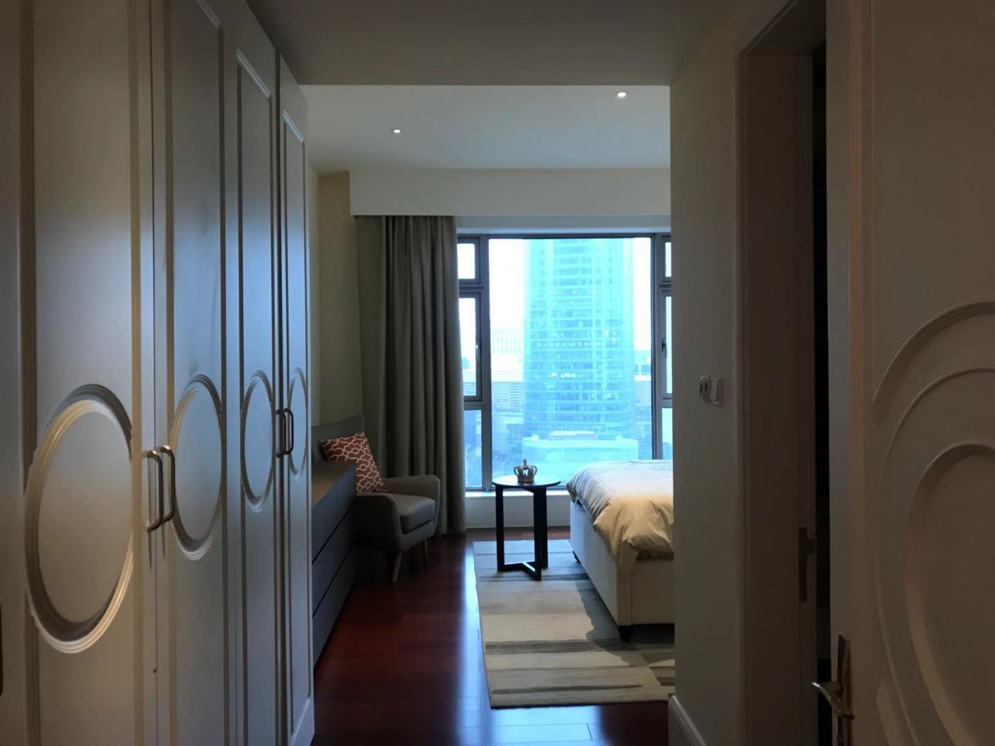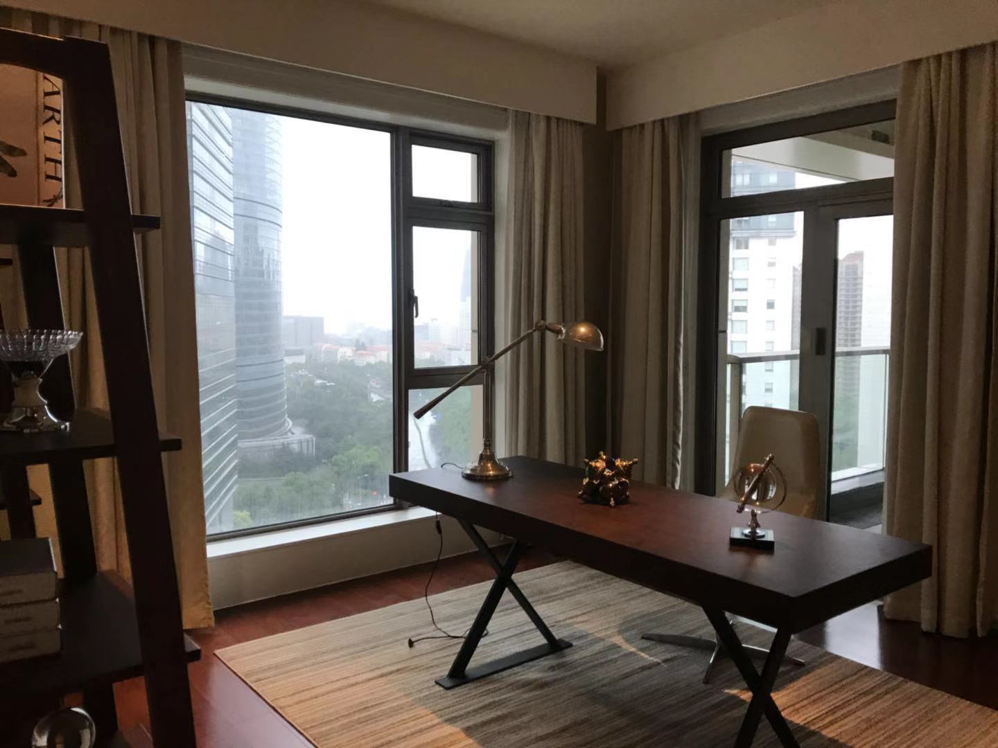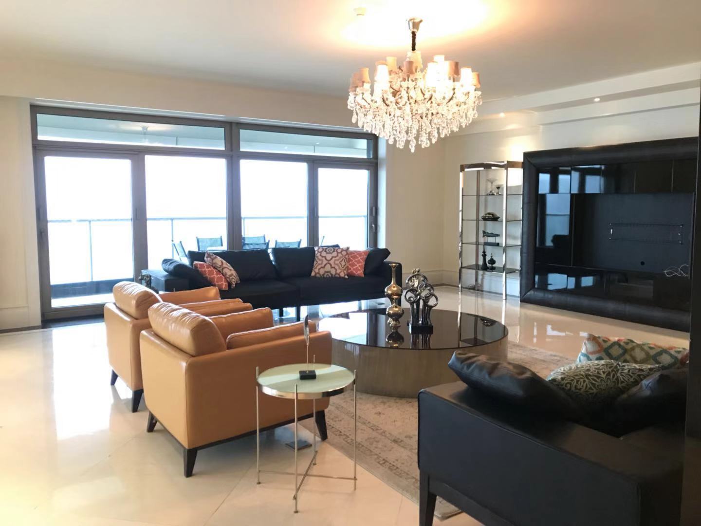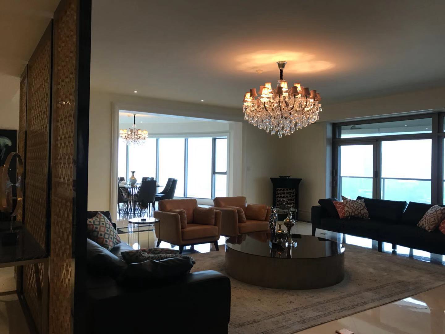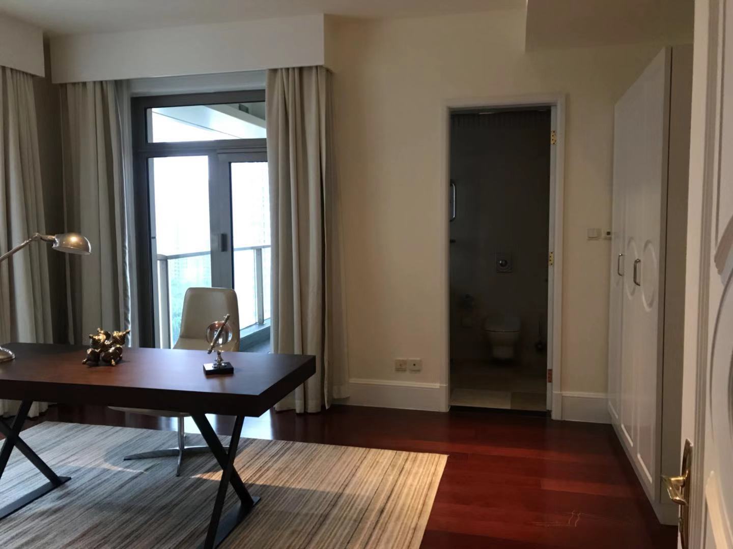 Located within walking distance to the major office buildings in the Lujiazui financial centre, shopping mall (Super brand Mall), fine dining venues (cool restaurants along the Huangpu river), the compound is close to the Yan'an Road Tunnel, and offers easy access to Puxi. As one of Shanghai's most exclusive apartment compounds, Tomson Riverside offers the city's finest view of the Huangpu River and the historic buildings along the Bund. This luxury compound contains four high-end apartment blocks, and with only one apartment per floor residents enjoy the ultimate in privacy, spaciousness and comfort. All apartments feature floor-to-ceiling French windows with a panoramic view of the Bund, as well as top-end appliances.