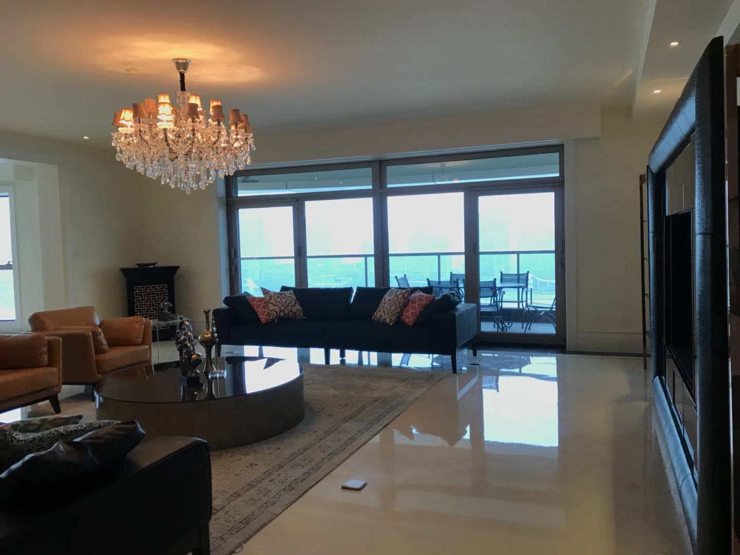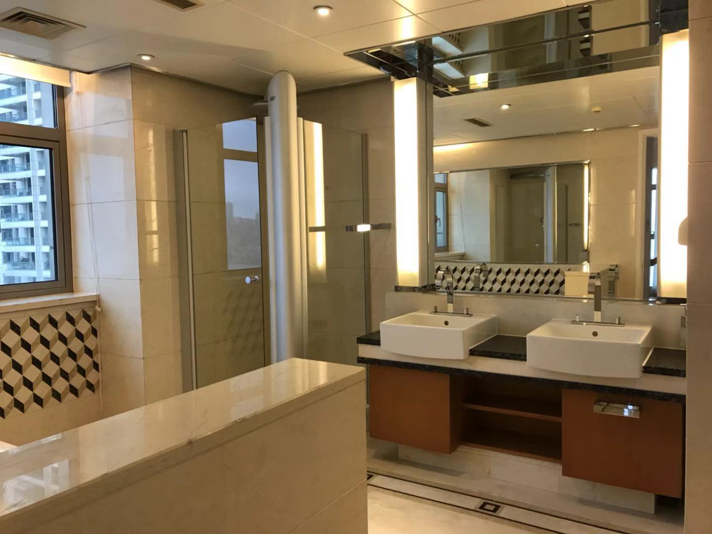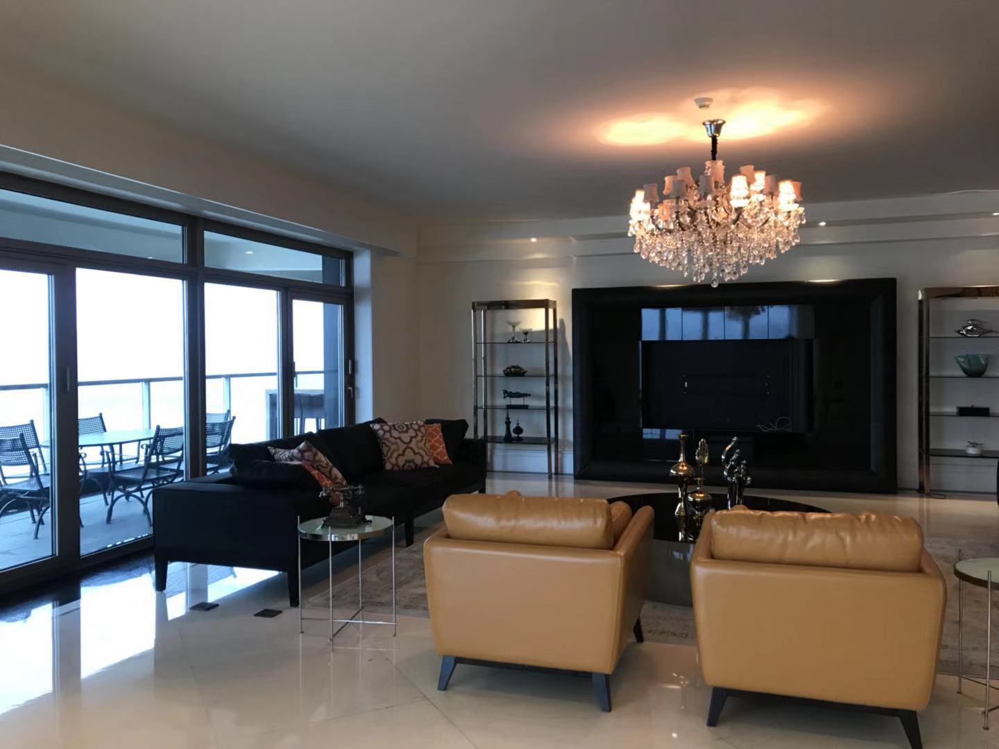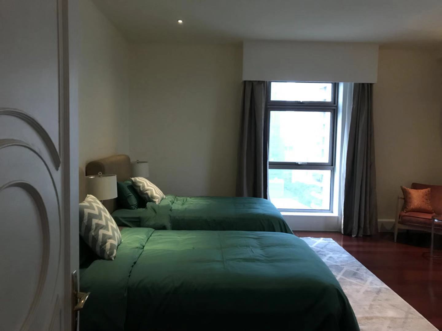 Located within walking distance to the major office buildings in the Lujiazui financial centre, shopping mall (Super brand Mall), fine dining venues (cool restaurants along the Huangpu river), the compound is close to the Yan'an Road Tunnel, and offers easy access to Puxi. As one of Shanghai's most exclusive apartment compounds, Tomson Riverside offers the city's finest view of the Huangpu River and the historic buildings along the Bund. This luxury compound contains four high-end apartment blocks, and with only one apartment per floor residents enjoy the ultimate in privacy, spaciousness and comfort. All apartments feature floor-to-ceiling French windows with a panoramic view of the Bund, as well as top-end appliances.