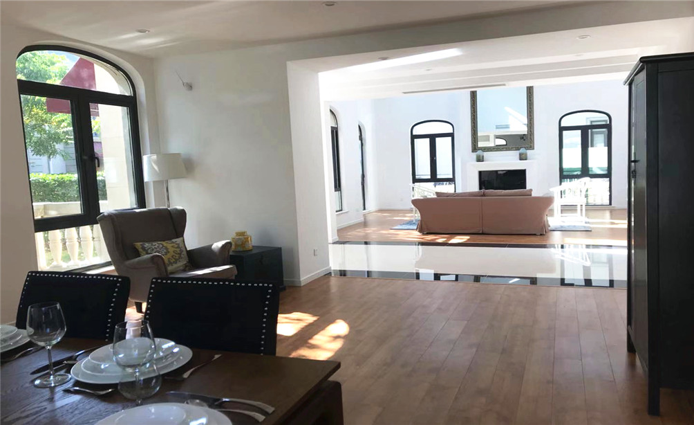 This house is brand new which opend on September, 2019. Newly renovated with modern style furnished, open kitchen, whole house with floor heating and central AC system, very spacious. This house has private garden and with basement. This comound built 3years before with a lot of tress and compound has it's own facilty with gym and kid's indoor and outdoor playdground, also landlord will provide the club house memebership next door with gym and swimming pool.