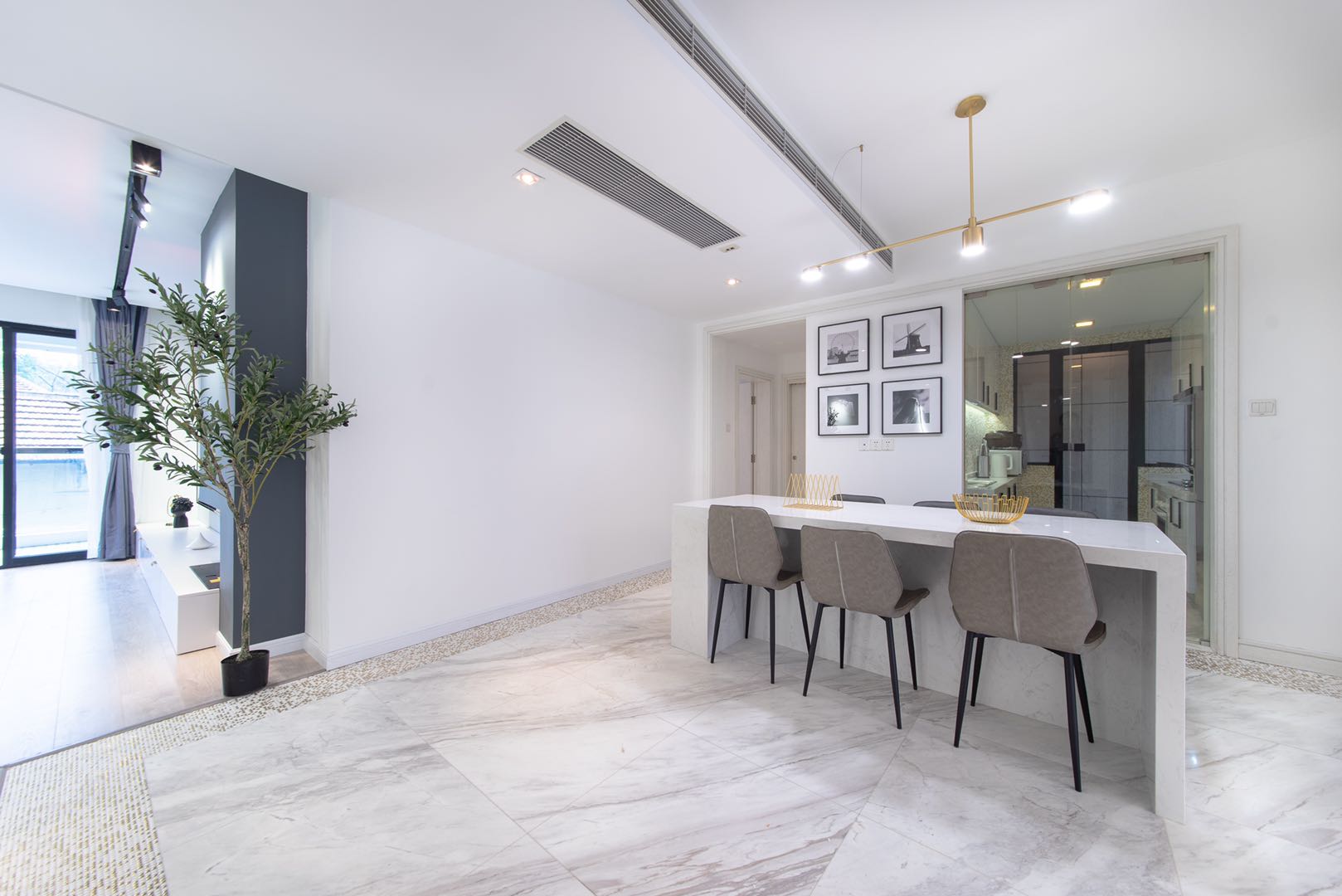This apartment located at Gaoyou Road, really quite place and whole building only has 8th floor in total. This apartment is newly renovated, very nice kitchen well equipped with oven, very bright. Modern furniture, whole house floor heating and central AC. Landlord is nice and provide good service.