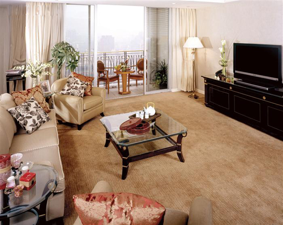 This superb service apartment in shanghai features carpet in the living room and high standard furniture in every room. Spacious kitchen room is well equipped with high quality appliances. Each bathroom is attached to a bedroom. Their service includes2 times housekeeping/week,1 time for changing the sheets.The club service fees are included in the rent.