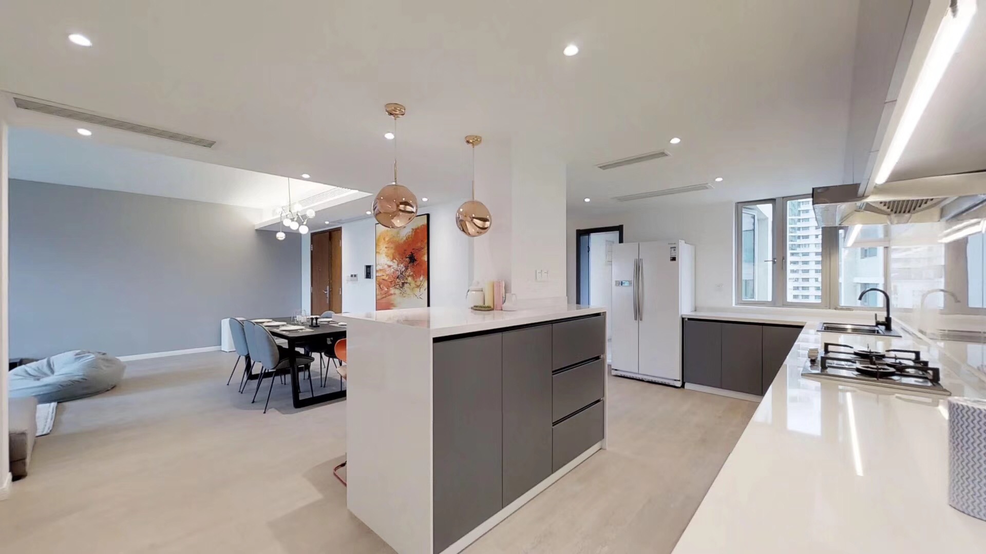 Lane 183 HuaiHaiXi Road,walking distance to line 10/11,4/2/2,230sq.m,floor heated,A/C,open kitchen with oven and dish washer,big balcny with great view RMB49,800/M.