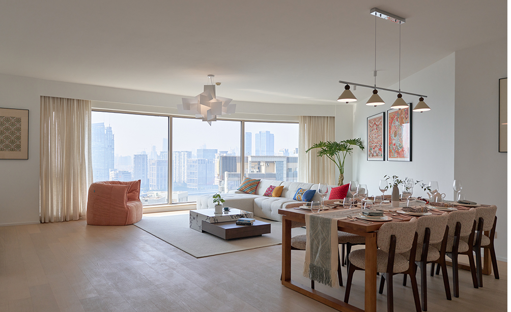 Located closely near the bank of the Huangpu River and Lujiazui Finance and Trade Zone. It has high-efficient traffic environment: The neighborhood is located next to East Yan'an Road Tunnel, Fuxing Road Tunnel, Yangpu Bridge, Nanpu Bridge and Lupu Bridge and right opposite to the Bund. It also enjoys easy access to Metro Line 2. The roads surrounding the neighborhood are connected with the developed traffic network of Pudong which enable residents of the neighborhood to drive to all major areas in West Shanghai and East Shanghai very soon. To fully use the rare river scenery resources, all main construction units are ranked in a line from north to south and in a shape of arc and well laid out to avoid blocking of sight which enables every household to face the river and enjoy beautiful scenery. The outside of the apartment is decorated together with light green glass wall and light-colored wall which establishes a steady foundation for the supreme grade of the riverside deluxe buildings in the neighborhood.