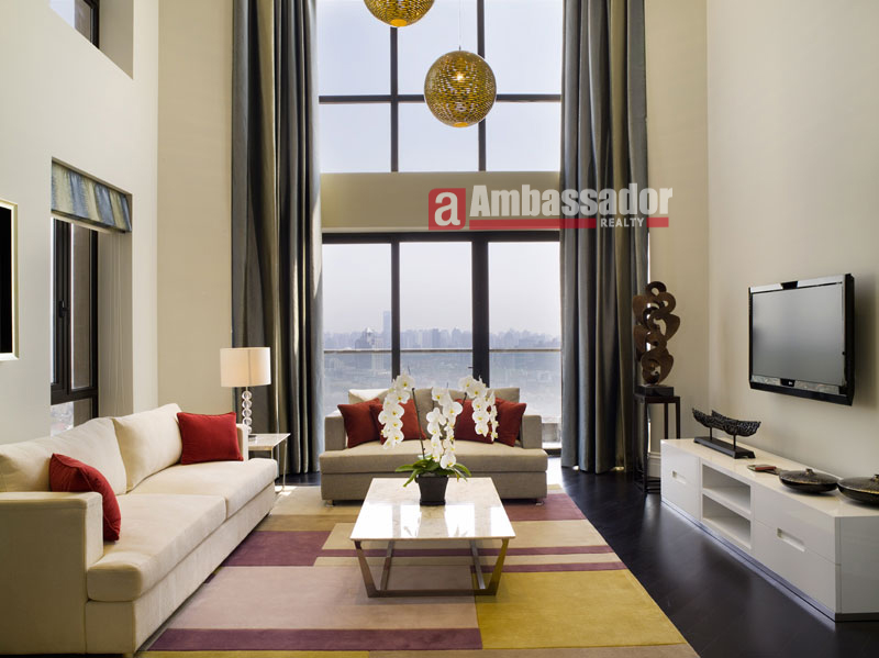 This luxurious decorated service apartment in shanghai provides you with high quality furniture. Bright living room with floor to ceiling windows offers you panoramic view of the outside scenery. Dark wooden floors are throughout in each room. Their service includes 2 times housekeeping/week,1 time for changing the sheets.The club service fees are included in the rent.